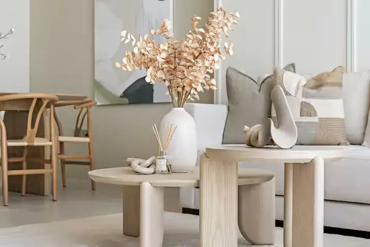 Cozy dining area for four with a relaxing setup including a sofa and Smart TV.